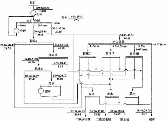 靖西錳礦重選-強(qiáng)磁-跳汰-搖床聯(lián)合工藝流程