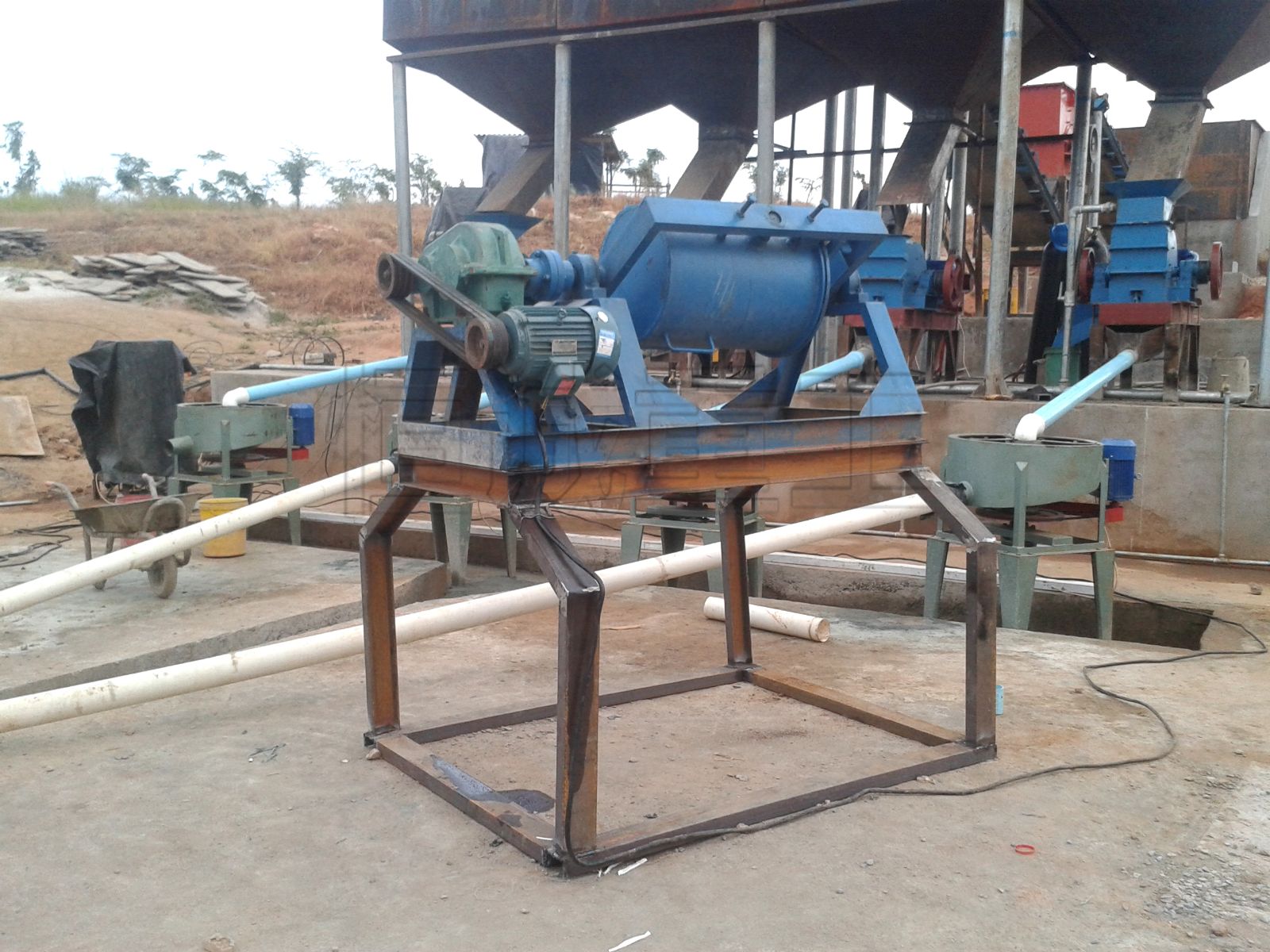 巖金礦通過高效破碎機(jī)破碎后進(jìn)入打砂機(jī)進(jìn)行細(xì)破,從而達(dá)到進(jìn)入搖床進(jìn)行分選。