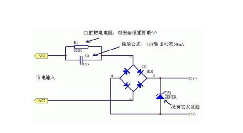 電容式降壓電路之所以在一些便宜的電器中看到,是因為這種電路比變壓器降壓和開關(guān)電源要便宜得多??梢哉f,低成本是這種降壓供電方式的唯一優(yōu)點;它有許多缺點,如輸出電流小、電壓隨負載波動大等。由于它與市政電力直接連接,非常不安全,因此該降壓方法的應(yīng)用范圍有限,只能用于輸出電流小、難以觸摸的場合。